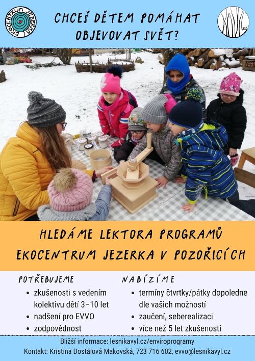 Rozšiřujeme tým lektorů environmentálních výukových programů v ekocentru Jezerka na pozořické hájence.