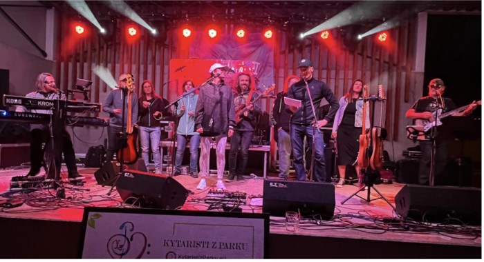 Podzim a zima patří otužovacím a hracím výletům do Mariánského údolí. Jo, jsme blázni do zdravého životního stylu. A nově rozjíždíme projekt „Kamarádi muzikanti“, což je hraní v malých (tříčlenných) skupinkách přímo na pokoji pro klienty a pacienty v domech pro seniory, nemocnicích atd. Když se podíváte na naše stránky www.kytaristizparku.eu, v sekci „Projekty“ vše zjistíte.